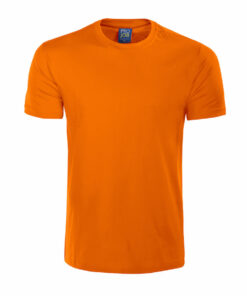 T-paita single jersey -neulosta (värit 10 ja 17 interlock-neulosta). Päivitetty mitoitus, kauluksessa kaksinkertainen joustoneulos ja niskanauha. Sivusaumaton.