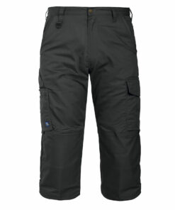 3/4 reisitaskuhousut ilman etulaskosta. Sivutaskut, oikealla puolella vetoketjullinen turvatasku. Oikeassa reisitaskussa on paikka kynille, papereille ja mitalle. Vasemmassa reisitaskussa on läppä, taskun sisäpuolella puhelintasku. D-rengas edessä. Takataskut sekä sisäpuolella polvisuojataskut.