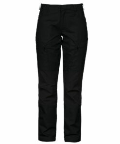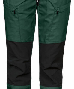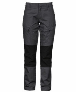 Mukavat työhousut, joissa joustavaa kangasta takapuolessa, haaroissa ja polvissa. Joustavuus mahdollistaa hyvän liikkuvuuden. Kaksi vetoketjullista reisitaskua ja kaksi läpällistä takataskua. Leveämpi vyölenkki, joka estää vyön painamisen. Paikat riipputaskuille.