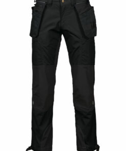 Tekniset housut, joissa strategisesti sijoitetut joustavat paneelit. Lahkeissa Cordura®-vahvikkeet sekä pitkät ilmakanavat sivuissa. Ei sisäsaumaa lahkeissa. Kaksi vetoketjullista reisitaskua joihin saa kätevästi työkalut ja puhelimen. Vahvistetut polvet. Sisäpuolelta avattavat polvitaskut polvisuojille, joiden korkeus on säädettävissä. Heijastavat yksityiskohdat polvitaipeissa.