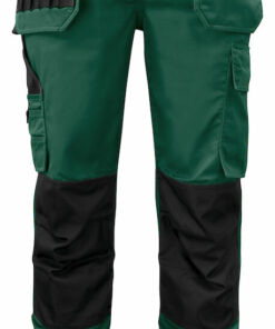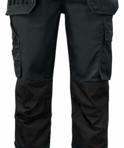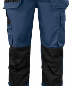 Helppohoitoiset polyesteri-puuvillahousut, jotka säilyttävät muotonsa ja värinsä. Riipputaskut, joissa lisätasku ja vetoketjullinen tasku. Läpälliset takataskut, joissa tarrakiinnitys. Läpällinen reisitasku, jossa lisätasku ja tarrakiinnitys. Mittatasku, jossa puukkonappi. Polvisuojat voidaan säätää kahdelle eri korkeudelle. Vahvikkeet riipputaskuissa, mittataskussa ja polvisuojataskuissa. Kokoja C42-C64 voidaan pidentää 5 cm.