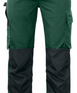 Helppohoitoiset polyesteri-puuvillahousut, jotka säilyttävät muotonsa ja värinsä. Läpälliset takataskut, joissa tarrakiinnitys. Mittatasku, jossa puukkonappi. Polvisuojat voidaan säätää kahdelle eri korkeudelle. Vahvikkeet mittataskussa ja polvisuojataskuissa.