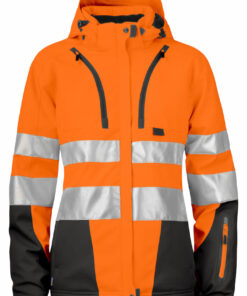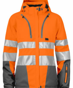 Naisten huomiotakki. Valmistettu teknisestä softshell-materiaalista, joka on tuulen- ja vedenpitävää. Tikattu toppavuori. Kaksi rintataskua, vasemmanpuoleisen sisällä puhelintasku. Kiinnike henkilökorttipidikkeelle. Kaksi vetoketjullista sisätaskua, joista toinen on suurempi ja sopii esim. papereiden säilytykseen. Kaksi sivutaskua. Yksi hihatasku vasemmassa hihassa. Vasemmalla puolella sisätasku, jossa aukko kuulokejohdolle. Vetoketjulliset tuuletusaukot kainaloissa. Säädettävä vyötärö. Säädettävät hihansuut. Pidempi selkäosa maksimoi käyttömukavuuden. Heijastavat tereet hihoissa ja selässä. Irrotettava ja säädettävä huppu. Kauluksen ja taskujen fleece-vuori lisää käyttömukavuutta.