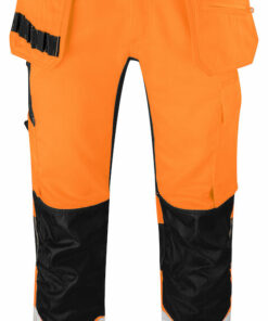 Todella joustavat työhousut. Joustavaa kangasta haaroissa sekä polvitaipeissa erinomaisen liikkuvuuden takaamiseksi. Riipputaskut voidaan työntää sivutaskuihin. Takataskut, joissa läppä ja tarrakiinnitys. Mittatasku ja puukkotasku, jossa puukkonappi. Kaksi vasaralenkkiä, yksi molemmilla puolilla. Muotoillut polvet. Sisäpuolella polvisuojataskut, jotka voidaan säätää kahdelle eri korkeudelle. Heijastavat yksityiskohdat parantavat näkyvyyttä. Kokoja C42-C64 voidaan pidentää 5 cm.