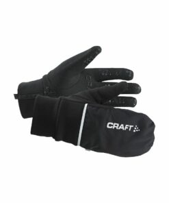 2-in-1 hanskat joissa piilotaskusta vedettävät tuulen- ja vedenpitävät sormisuojat. Silikoniset vahvisteet kämmenpuolella parantavat otetta. Molemmissa käsissä kahdessa sormenpäässä ”Touch Screen” pinta.