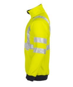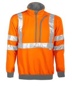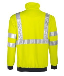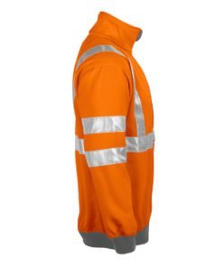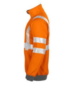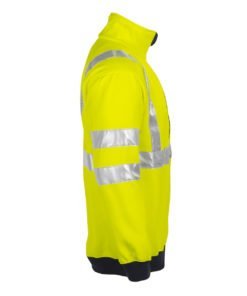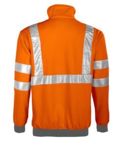 Puolivetoketjullinen college huomioväreissä. Resorit hihoissa ja helmassa. Vasemmassa rinnassa kätevä vetoketjullinen tasku.