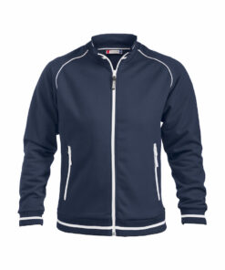 Sporttinen verkkaritakki, jossa mielyttävä harjattu sisäpinta. Tehosteena kontrastiraidat kauluksessa, helmassa ja hihansuissa. Etutaskuissa vetoketjut.