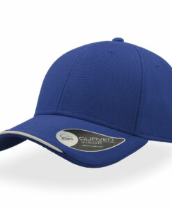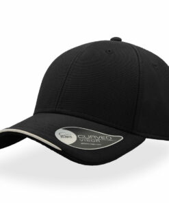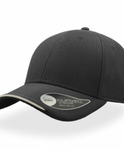 6-paneelinen baseball-lippalakki, jossa kontrastiväri visiirissä ja muovisolki takana.