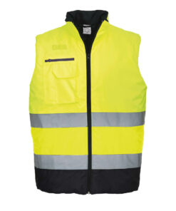 Perinteinen kaksivärinen lämpöliivi. Monitoimiset taskut ml.tilava puhelintasku ja lämmin vuori.