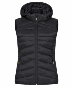 Lämmin mutta kevyt liivi untuvaa muistuttavalla toppauksella. Valmistettu kierrätetystä polyamidista. 3 vetoketjullista ulkotaskua ja 2 sisätaskua. Joustavat resorit vyötäröllä. Naisten mallissa on irrotettava huppu. Mukana värillinen ripustin, kätevä kuulokeratkaisu ja vetoketjun vedin.