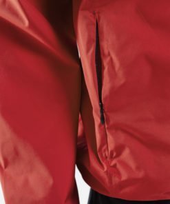 Vedenpitävä kuoritakki. Teipatut saumat. Tarrakiinnityksellä toimiva huppu kauluksen sisällä. Joustavat resorit hihoissa ja helmassa.