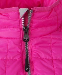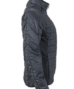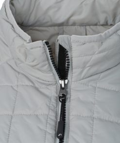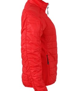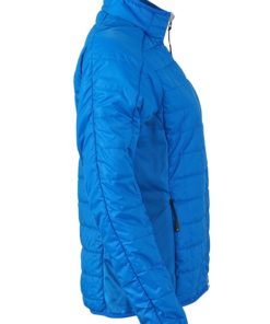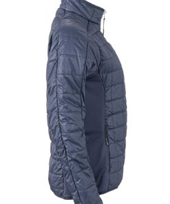 Naisten kevyesti pehmustettu takki. Piilotettu vetoketju ja sisävuori vastakkain. Kaksi vetoketjullista sivu- ja sisätaskua. Stand-up-kaulus. Vyötärömalli.