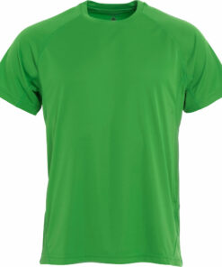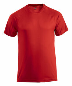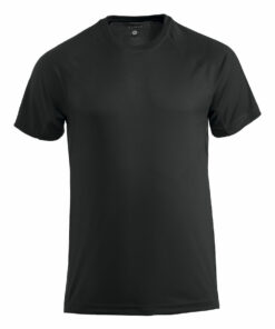 Urheilullinen t-paita teknisestä materiaalista. Selkäpuolella birds-eye -neulosta.